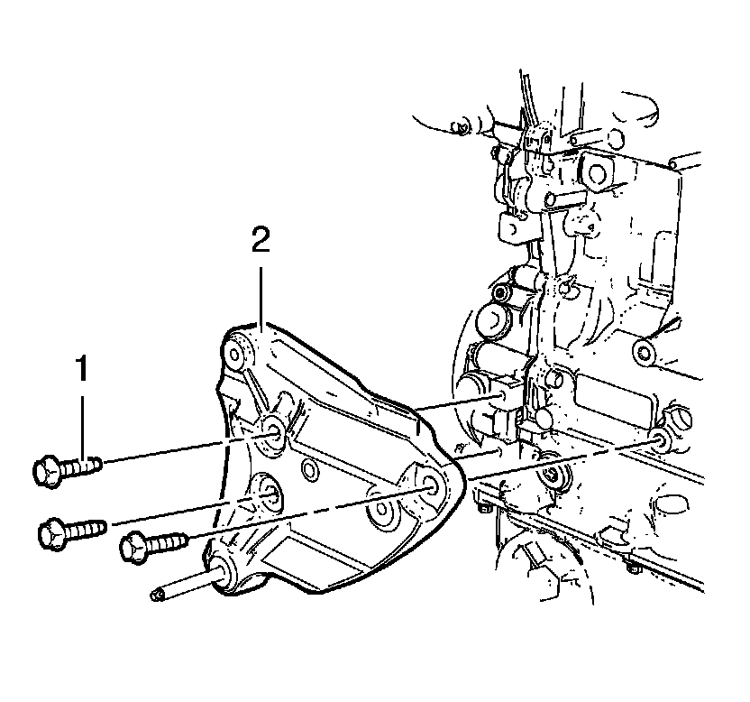1. Install the air conditioning compressor bracket (2).