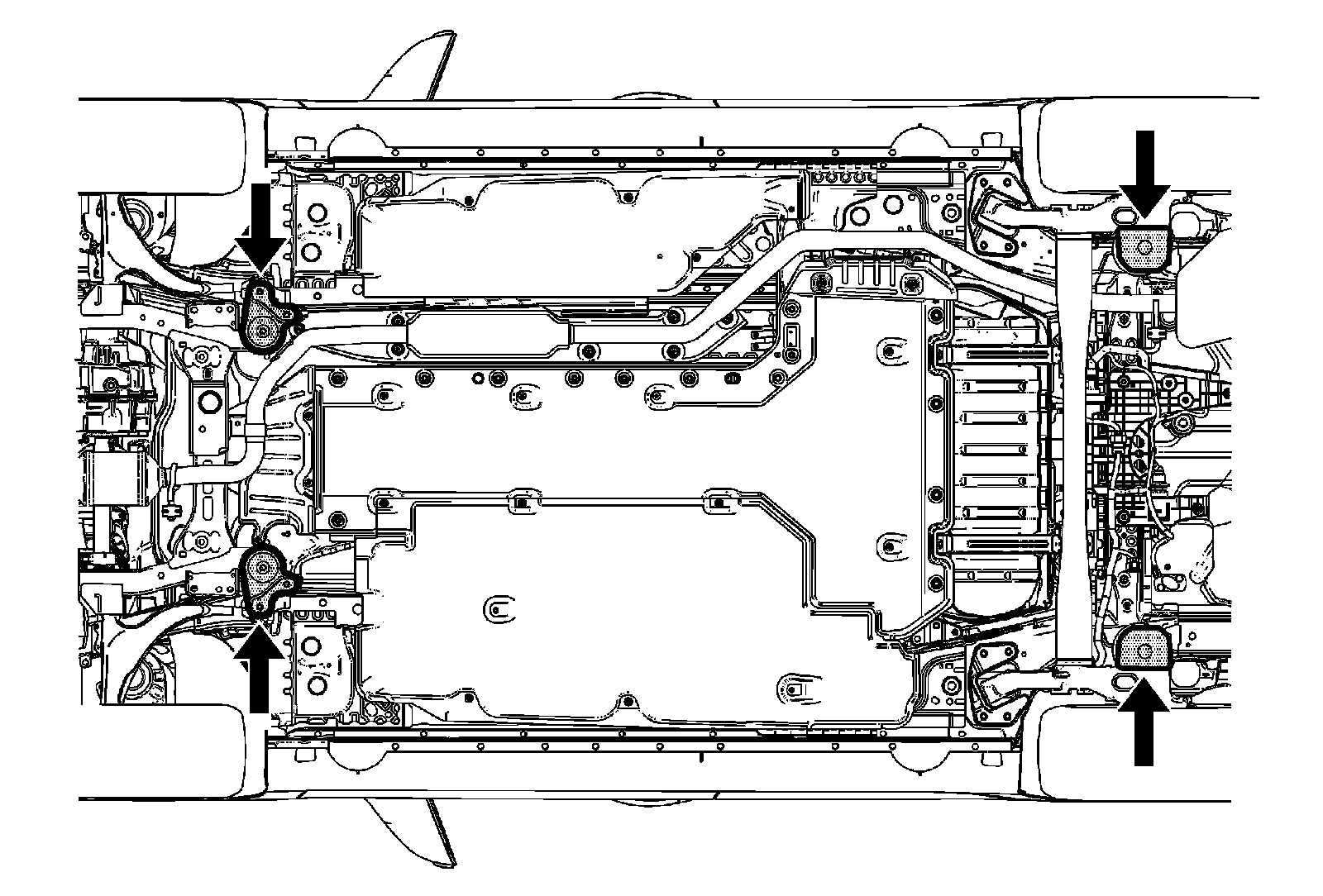 The hoist pads must not contact the rocker panel moldings or the underbody air deflectors. Additional clearance may be required for the lifting points.