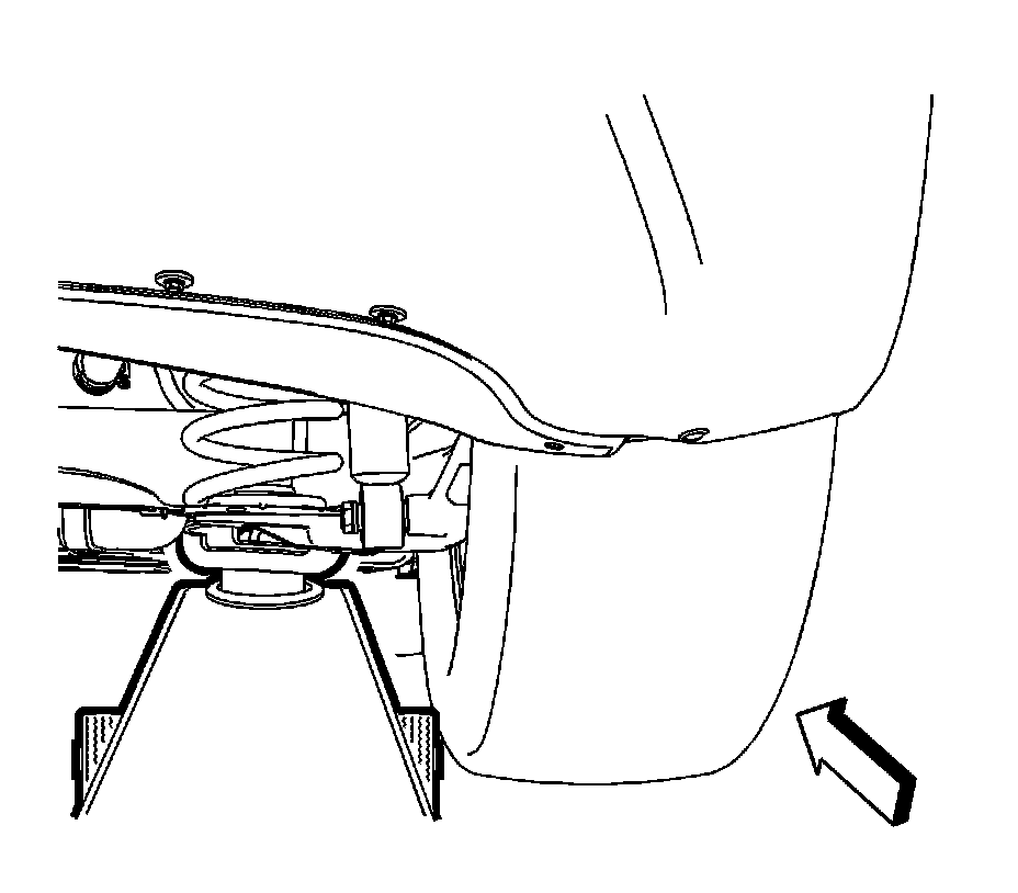 When you are jacking the vehicle at the front locations, be certain that the jack or the jack lift pad does not contact the front fascia, front fascia air dam, rocker molding, or the front fenders. If such contact occurs, vehicle damage may result. When jacking at selected front locations additional clearance may be required for the jacking points.