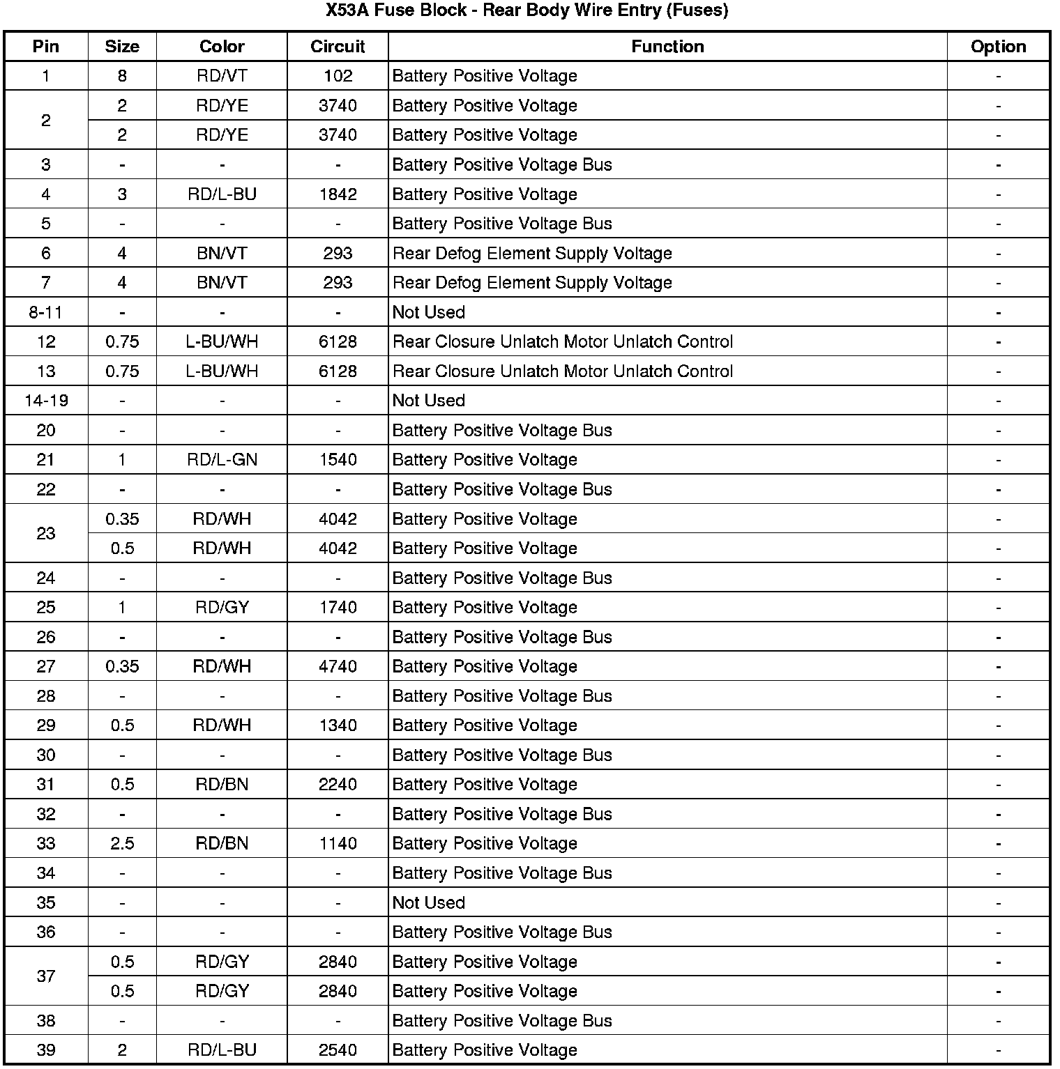 X53A Fuse Block - Rear Body Wire Entry (Fuses)