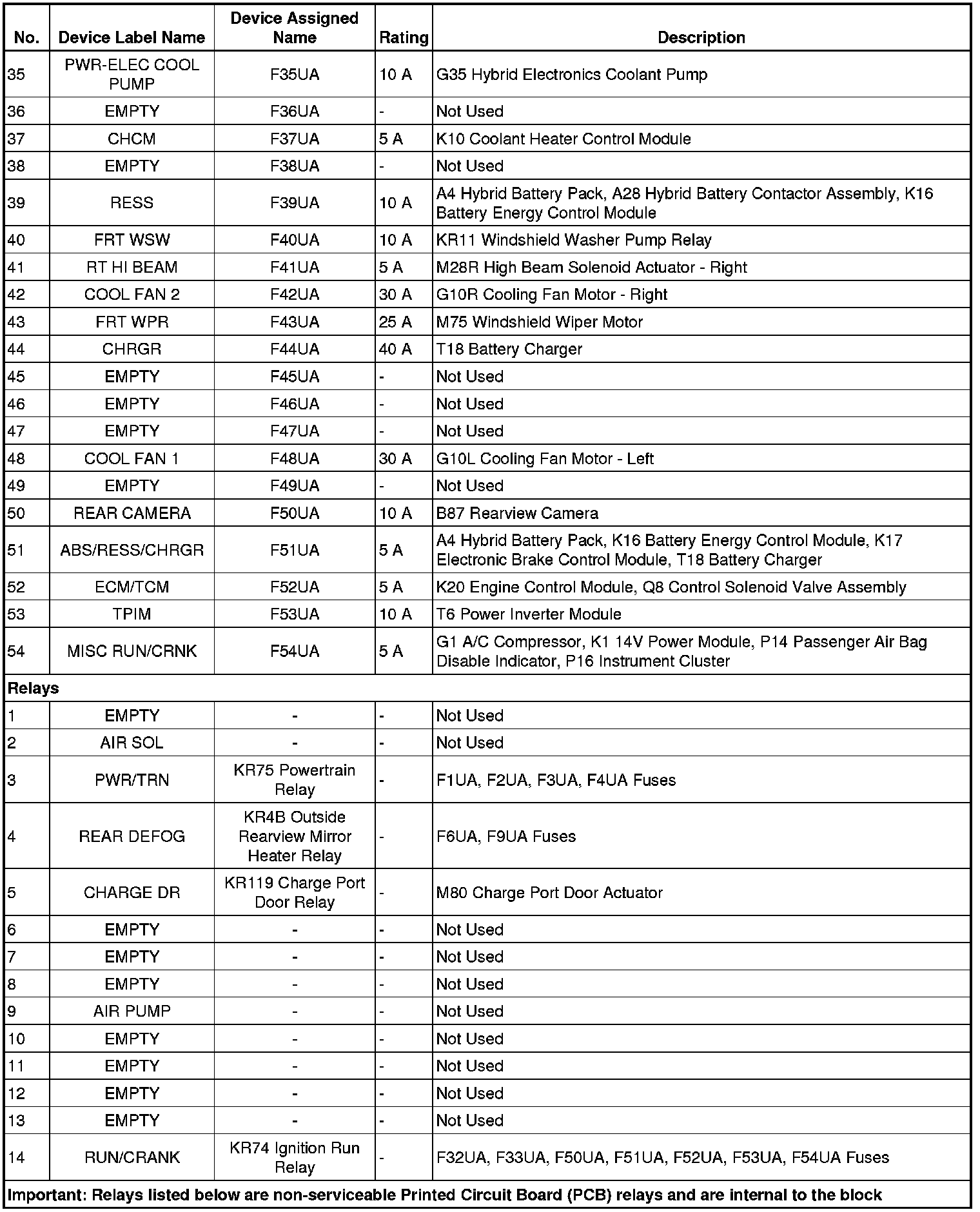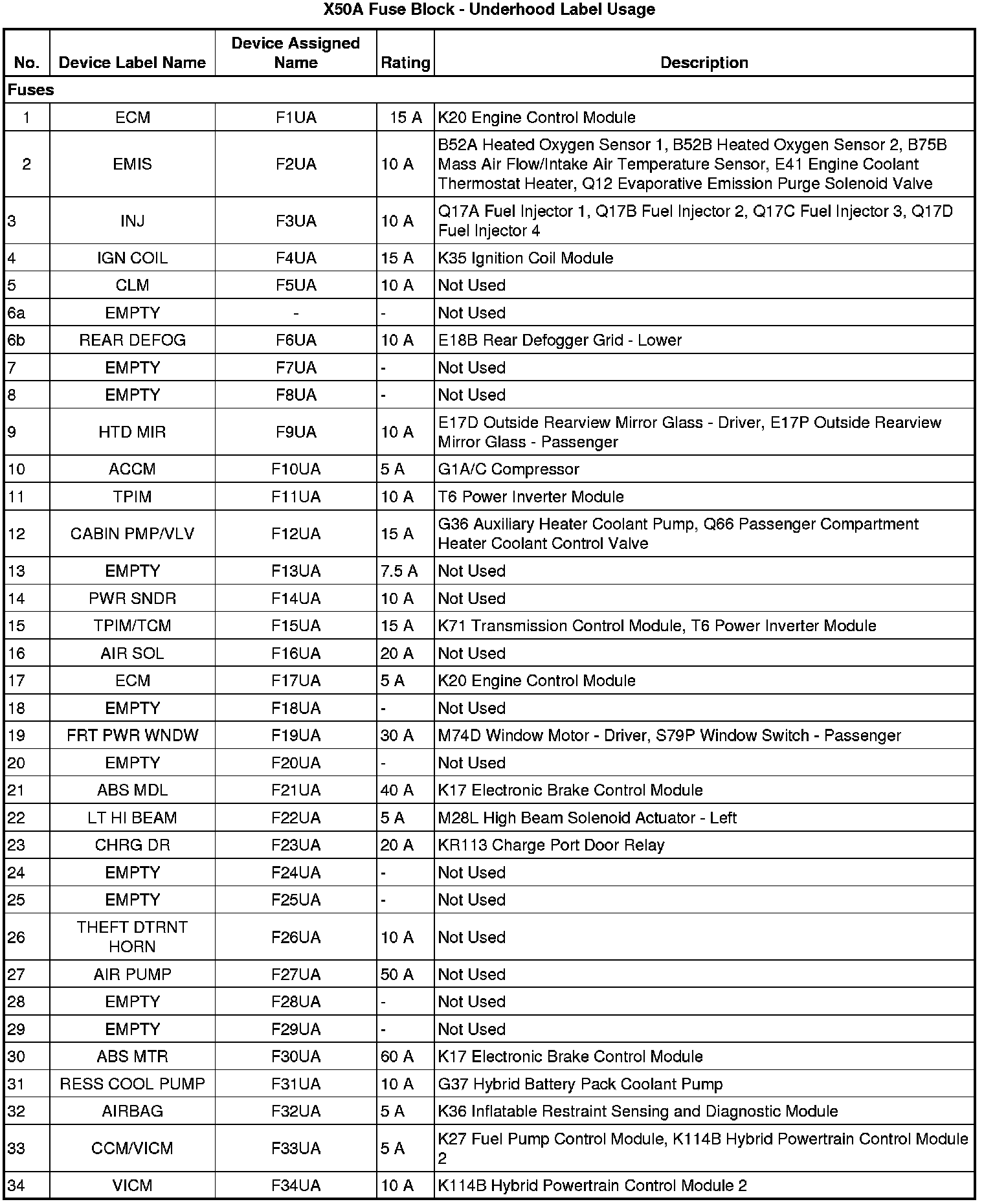 X50A Fuse Block - Underhood Label