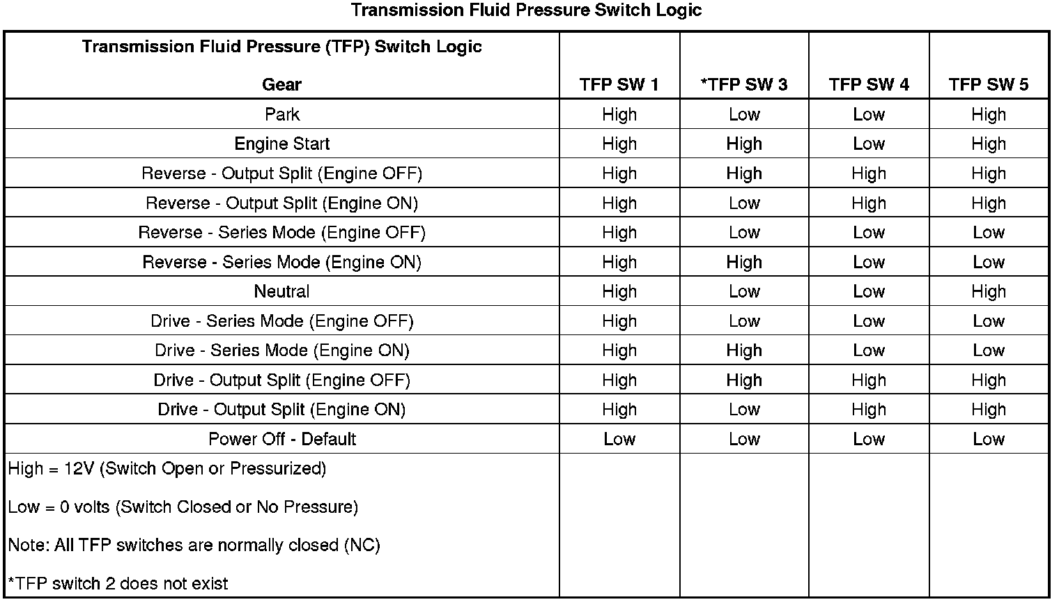 Transmission Fluid Pressure Switch Logic