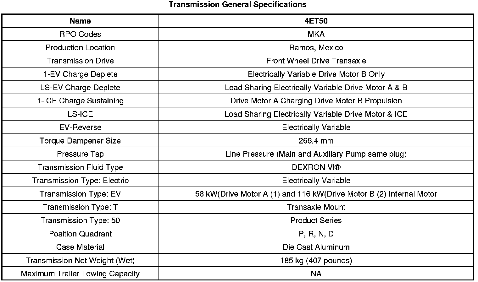 Transmission General Specifications
