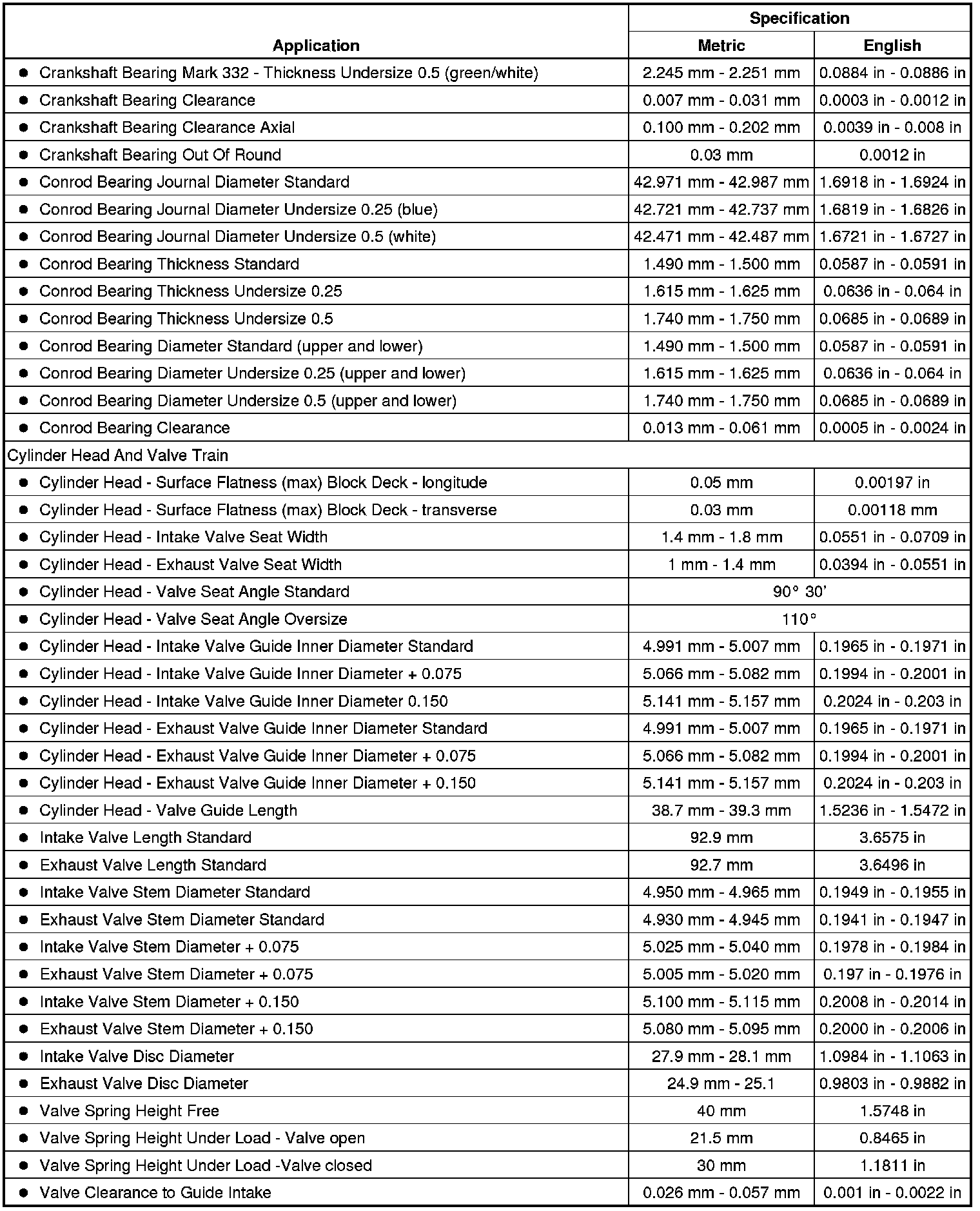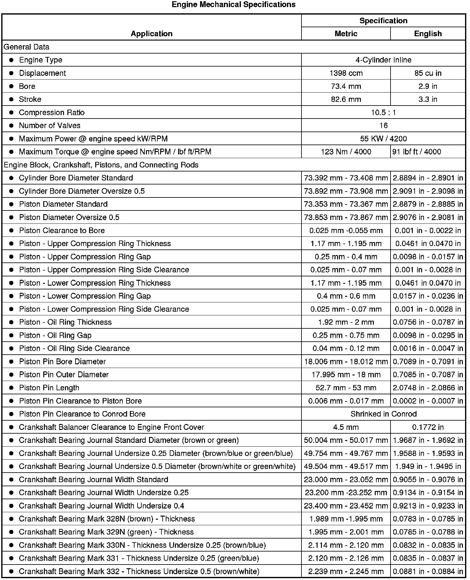 Engine Mechanical Specifications