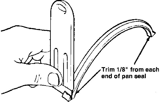 8. Trim approximately 1/8 inch from each end of new front pan seal, Fig. 47.
