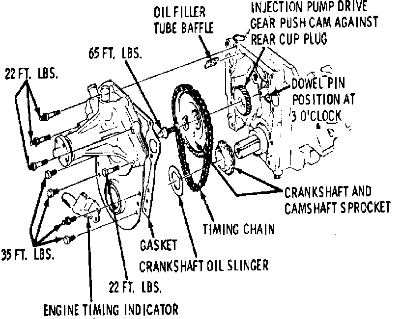 5. Remove front cover alignment dowel pins. It may be necessary to grind a flat on the dowel pins to provide a rough surface for gripping.