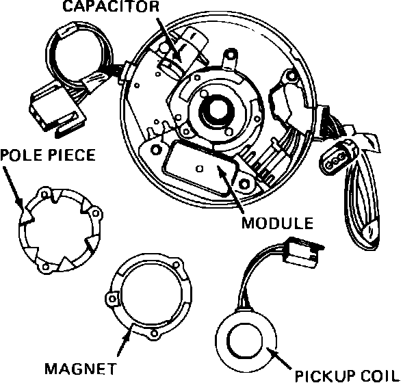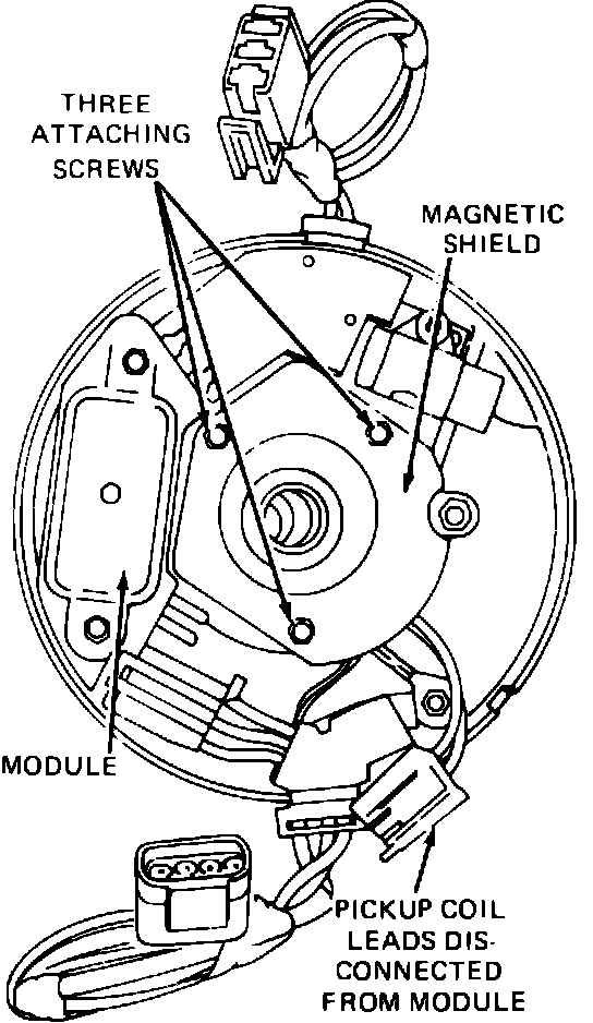 1. With distributor removed, disconnect pickup coil leads from module terminals.