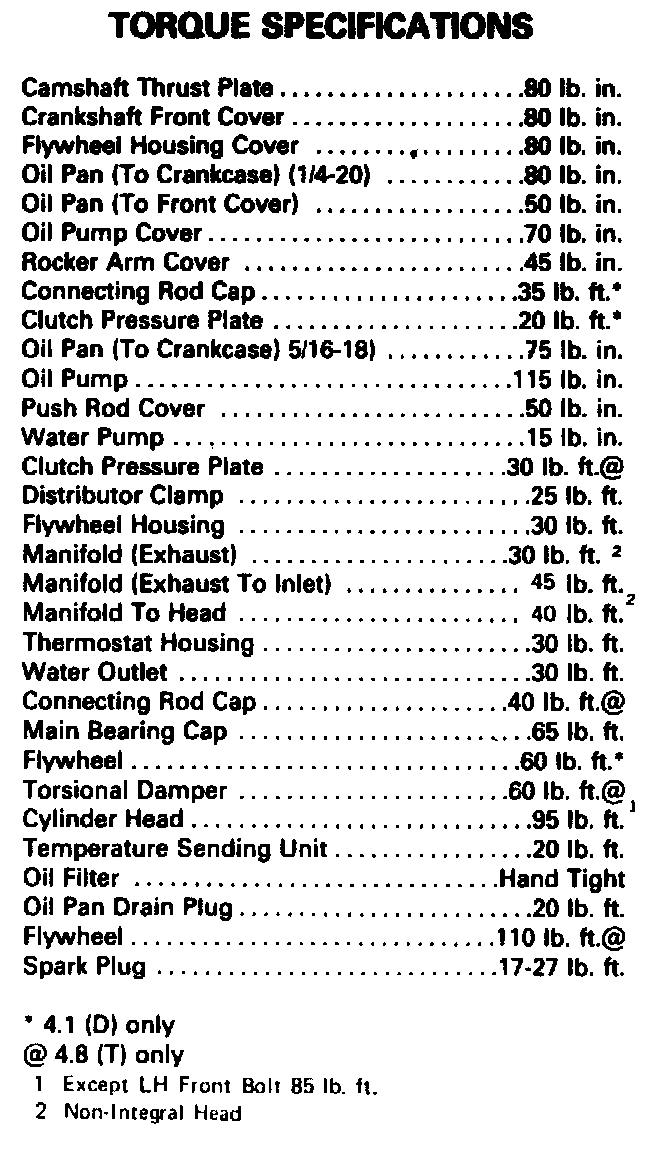 Torque Specifications: