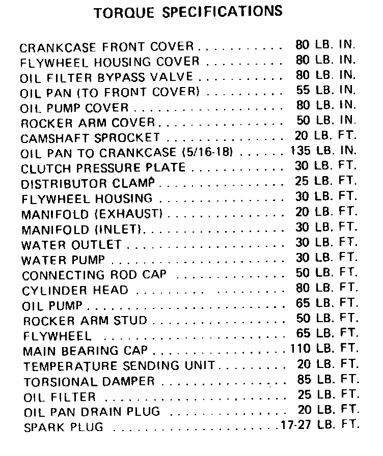 Torque Specifications: