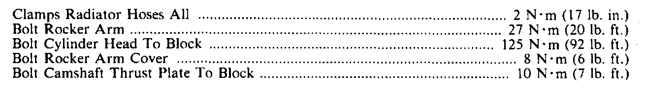 Torque Specifications: