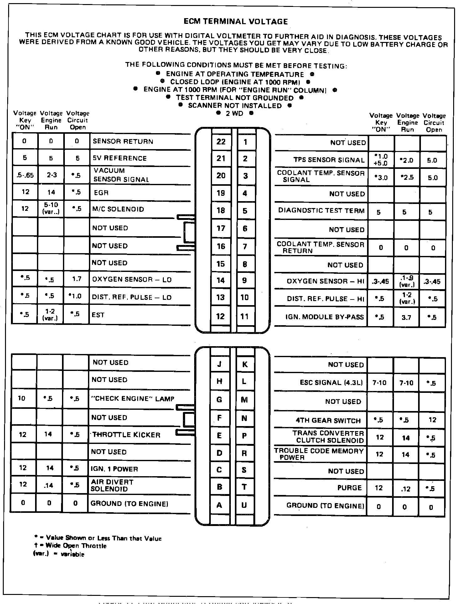 ECM Terminal Identification & Voltage Specifications: