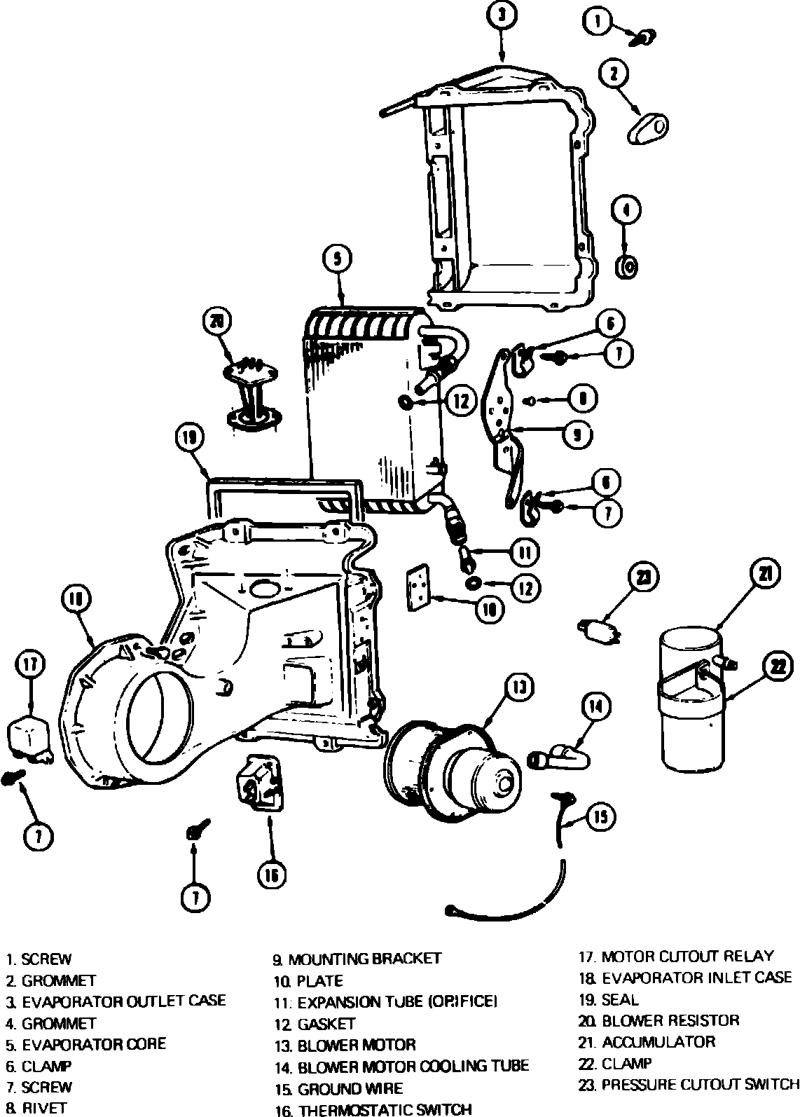 Fig. 5 Front blower motor & evaporator assembly. R & V Series: