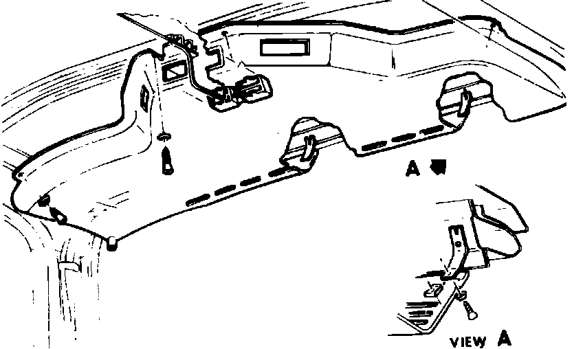 2. Remove rear duct drain tube, duct to header bracket and roof panel screws, then rear duct assembly, Fig. 6.