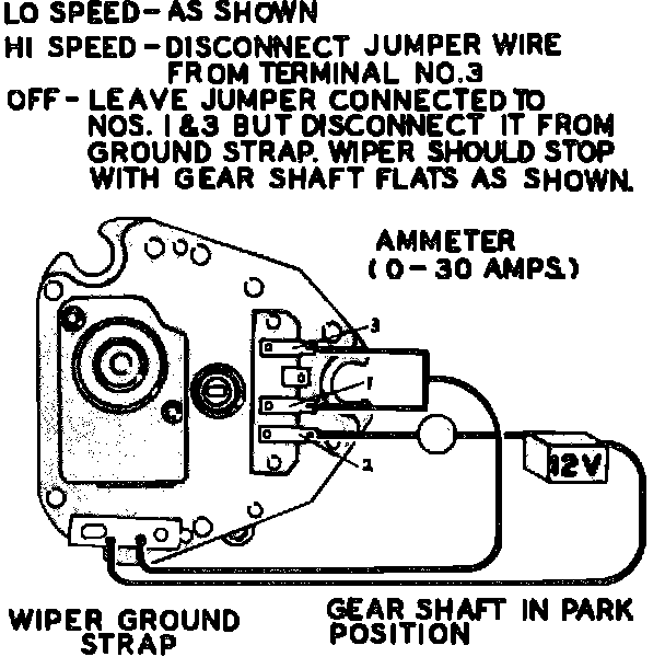 2. Grounded wire between motor terminal 3 and wiper switch.