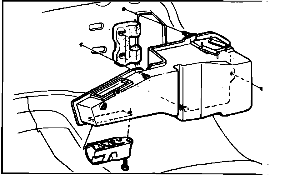 4. Remove screws at center duct to selector duct/instrument panel. Remove center upper and lower ducts.