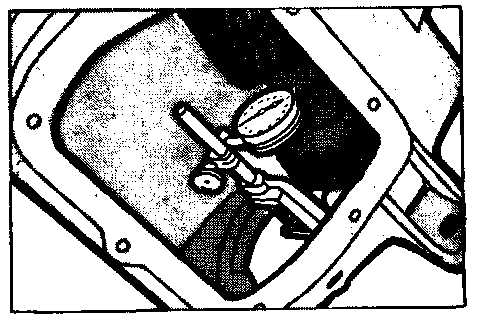 Attach dial indicator, check end play. If end play is greater than 0.025 in. new selective thrust washers must be installed.