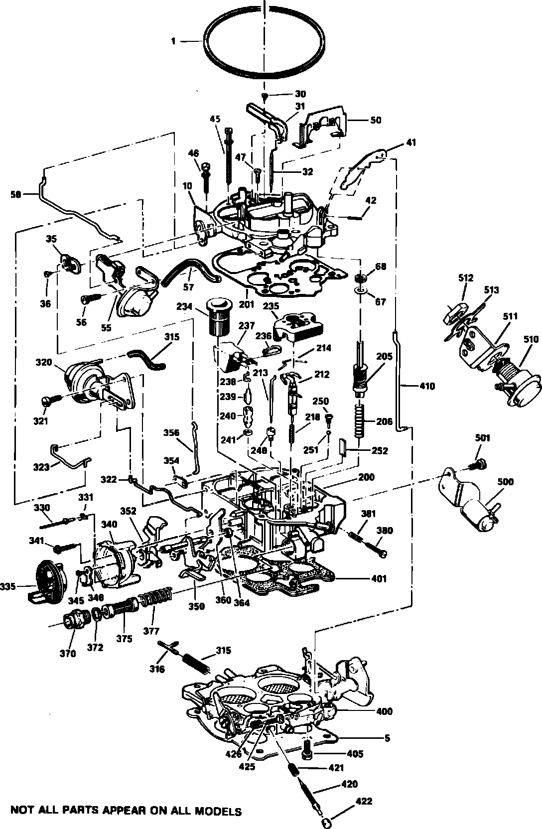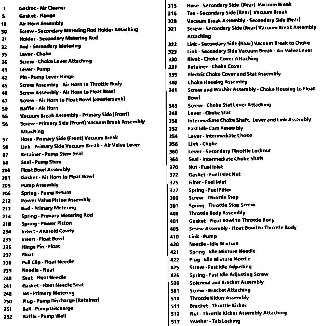 Fig. 3 Exploded view of Rochester M4ME Quadrajet carburetor (Part 1 of 2):