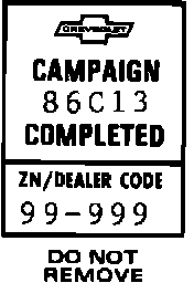 Each vehicle modified in accordance with the instructions outlined in this Product Campaign Bulletin will require a "Campaign Identification Label." Each label provides a space to include the five digit dealer code of the dealer performing the campaign service. This information may be inserted with a typewriter or ballpoint pen.