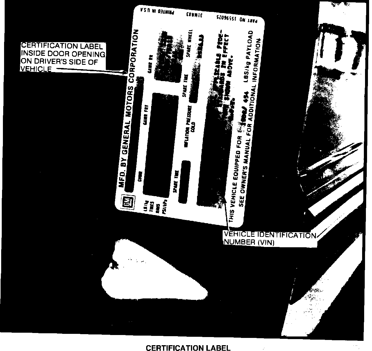 General Motors has determined that certain 1986 Chevrolet S/T Light Duty model trucks built at Moraine Truck Assembly do not conform to the requirements of Federal Motor Vehicle Safety Standard (FMVSS) 120, "Tire Selection and Rims for Vehicles Other Than Passenger Cars." The trucks were assembled correctly except that the tire and wheel information on the certification label may be incorrect. Specifically, all the 5's were changed to 6's (i.e. P195/75R14 read P196/76R14 and 15 x 6JJ read 16 x 6JJ).