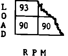 Although the integrator can correct the fuel delivery over a wide range, it is only for a temporary correction. Therefore, another control called "block learn" was added. Although it cannot make as much correction as the integrator, it does so for a longer period of time. It gets its name from the fact that the operating range of the engine for any given combination of rpm and load is divided into 16 cells or blocks (See Figure 1). When the engine is operating at any given combination of rpm and load, the system would be operating in one of these blocks. The computer has a given fuel delivery stored in each block. As the operating range gets into a given block, the fuel delivery will be based on what value is stored in memory in that block. Again, like the integrator, the number represents the "ON" time of the injector; therefore, the higher the number the more fuel would be delivered. Also, just like the integrator, the number 128 represents no correction to the value that is stored in that cell or block. When the integrator increases or decreases, block learn, which is also watching the integrator, will make a correction which will be reduced until finally the integrator will return to 128 if the block learn has corrected the fuel delivery.