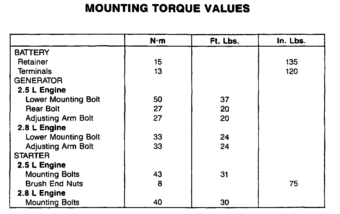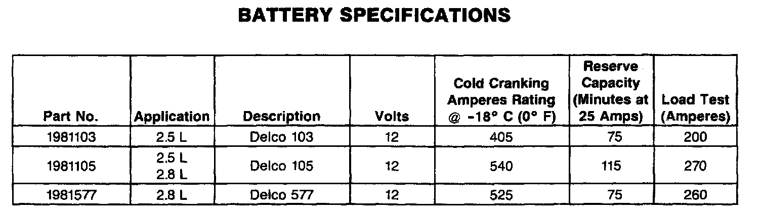 Starting and Charging: Specifications