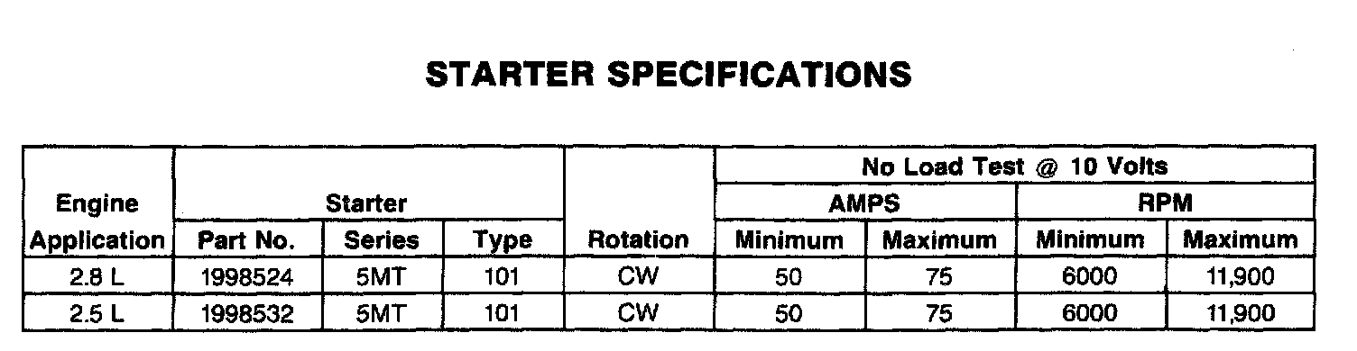 STARTER SPECIFICATIONS