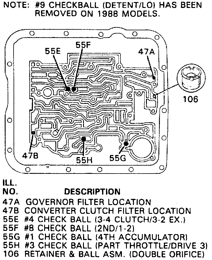 21. Note number of check balls located under valve body, and number of check balls located in case. Remove and ensure to retain check balls.