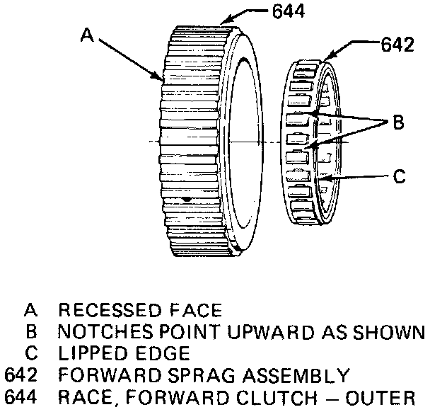 2. Remove sprag assembly wear plate, then the forward clutch retainer and race assembly.