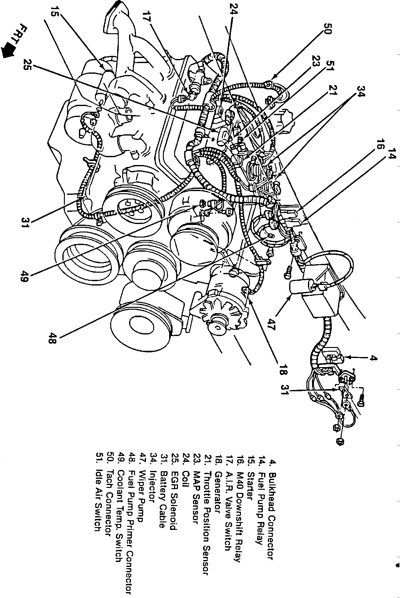 Firewall components & top of V6-262/4.3L: