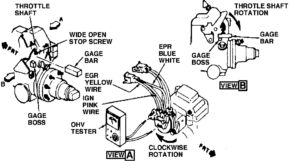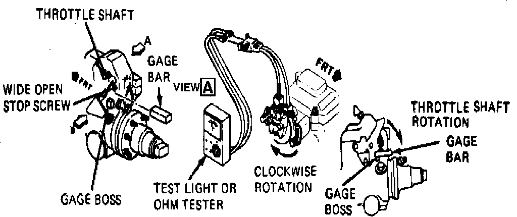 6. Check by allowing throttle lever to return to idle position. Remove ``switch closed'' gage bar and install ``switch open'' gage bar. Rotate throttle lever against it. There should be no continuity between terminals or wires.