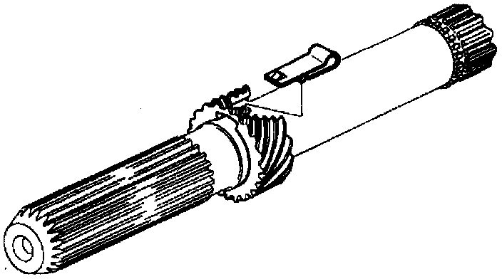 15. Install speedometer drive gear and clip. On some Corvette models, the output shaft may have two speedometer locating holes. Use the hole nearest the yoke spline.