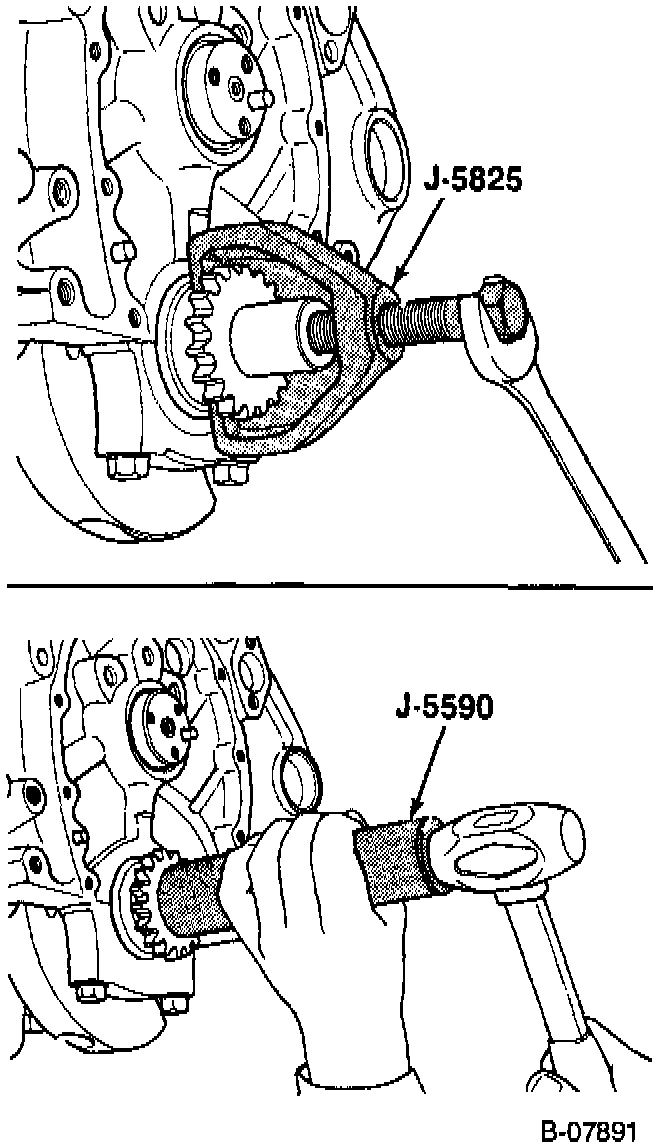 1. Crankshaft sprocket (if removed) using J 5590.