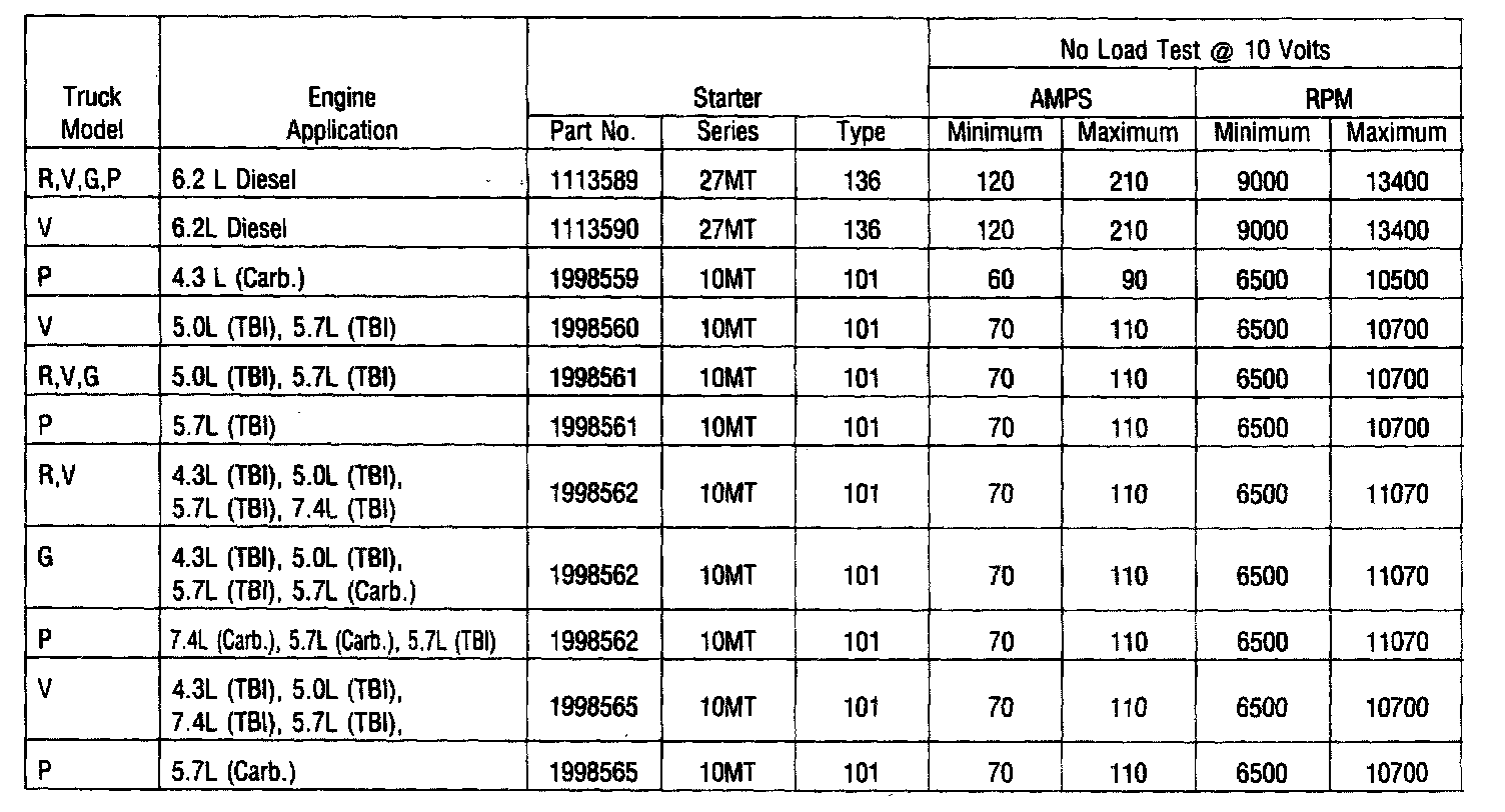 STARTER SPECIFICATIONS
