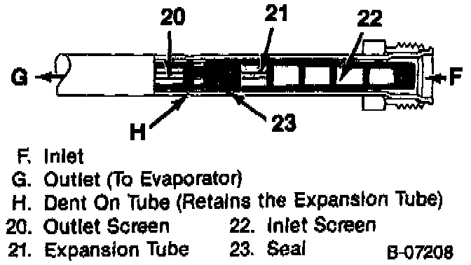 ^ Insert the short screen and end of the orifice into the evaporator inlet line.