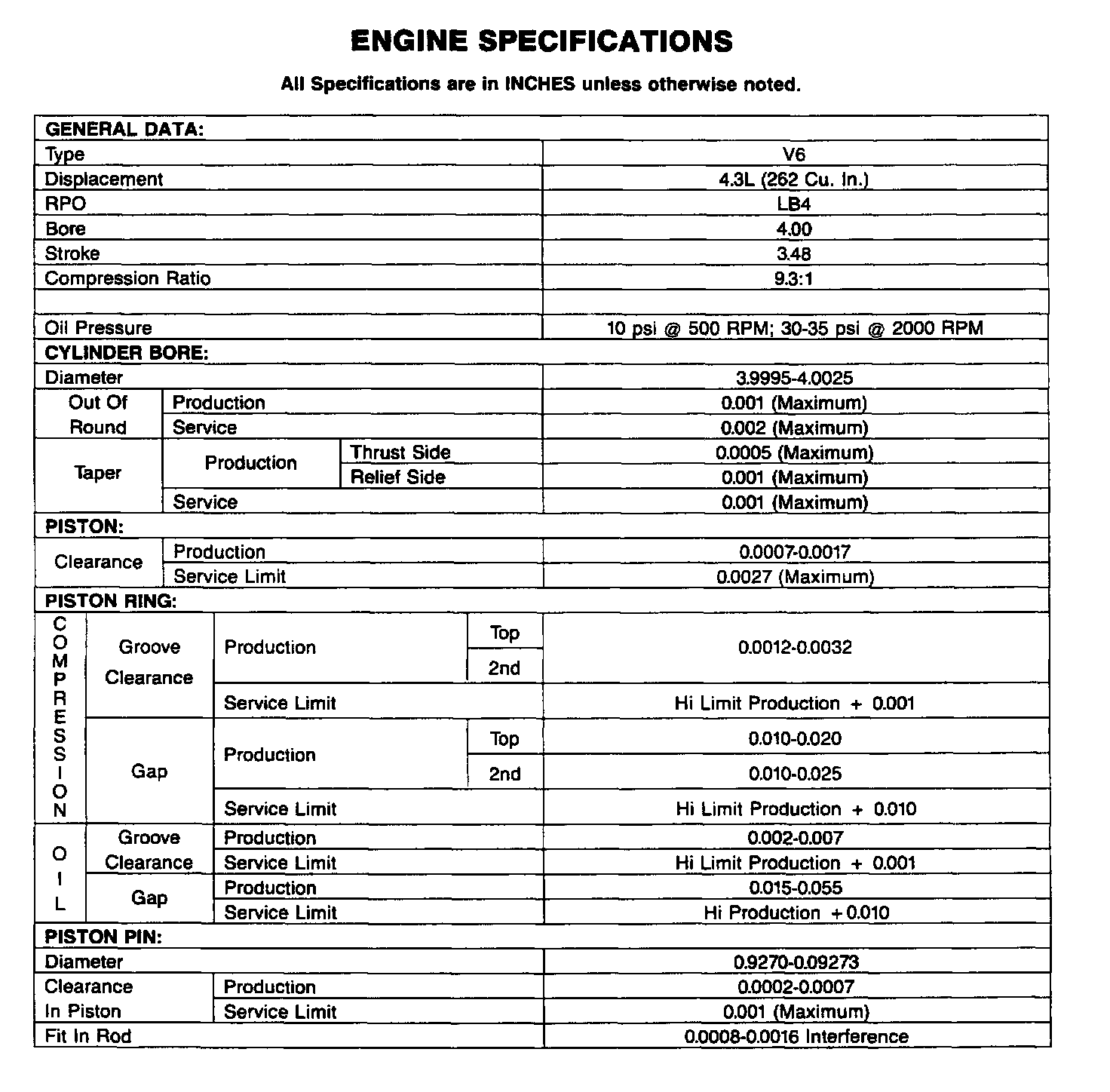 Engine Specifications: