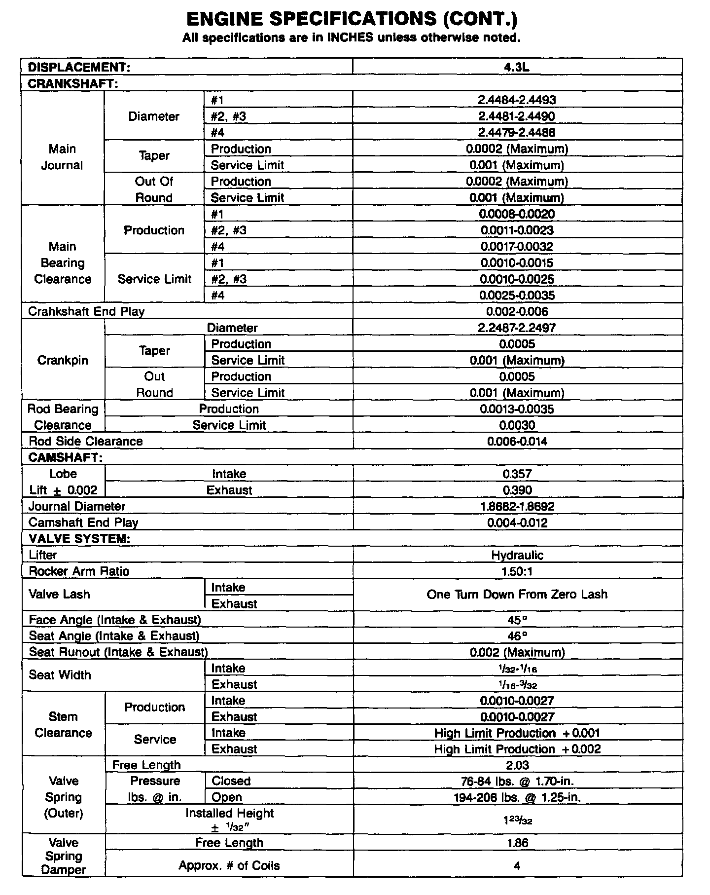 Continued Engine Specifications:
