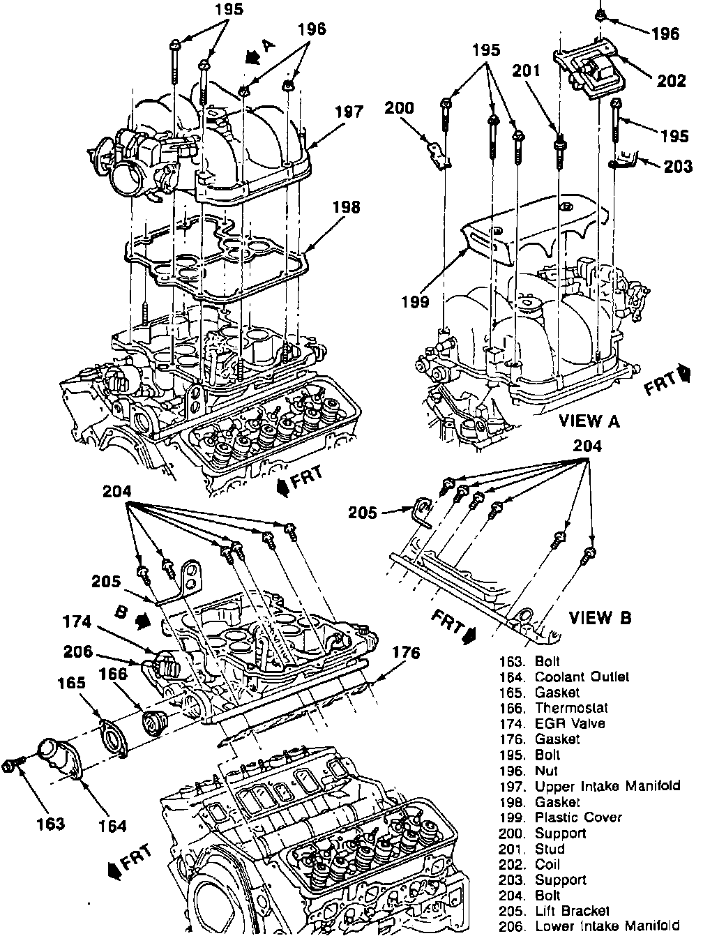 e. Remove intake manifold attaching bolts, then the intake manifold.