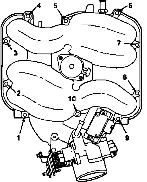 Fig. 8 Upper Intake Manifold Bolt Tightening Sequence. VIN W: