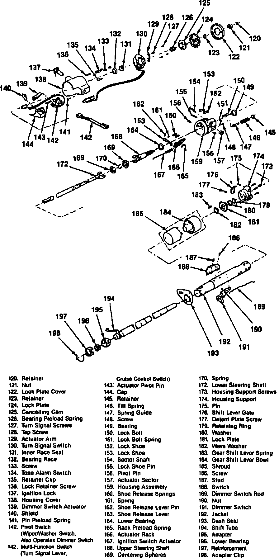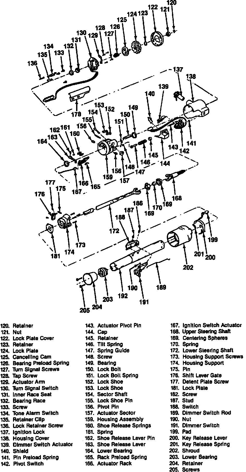 Fig. 23 Exploded view of tilt steering column (column shift).: