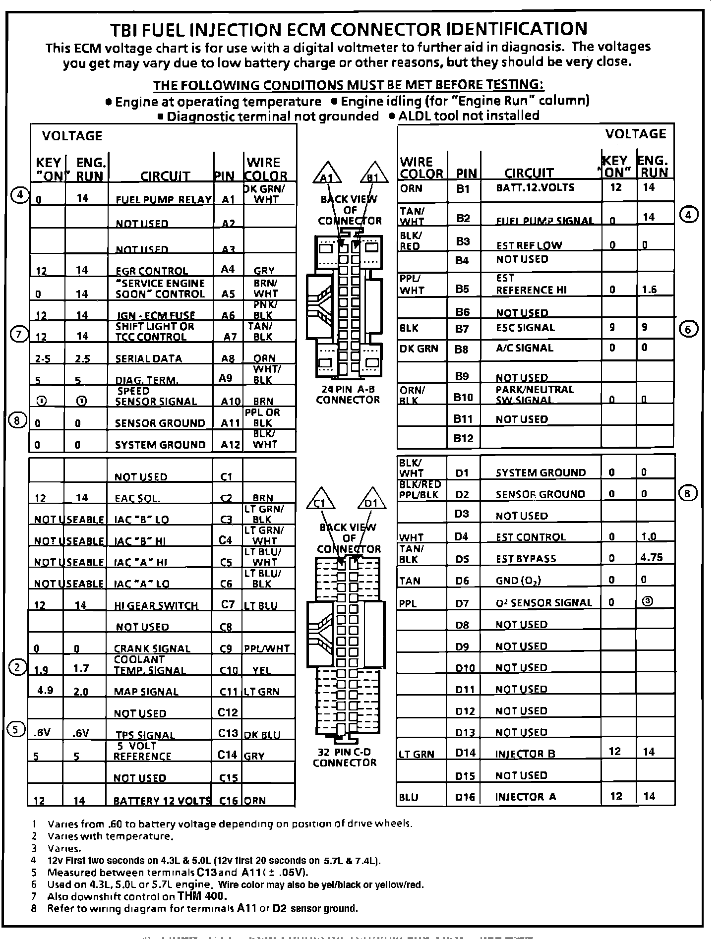ECM Connector Terminal Identification & Voltage Specifications.: