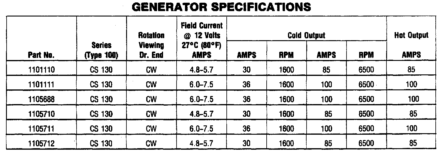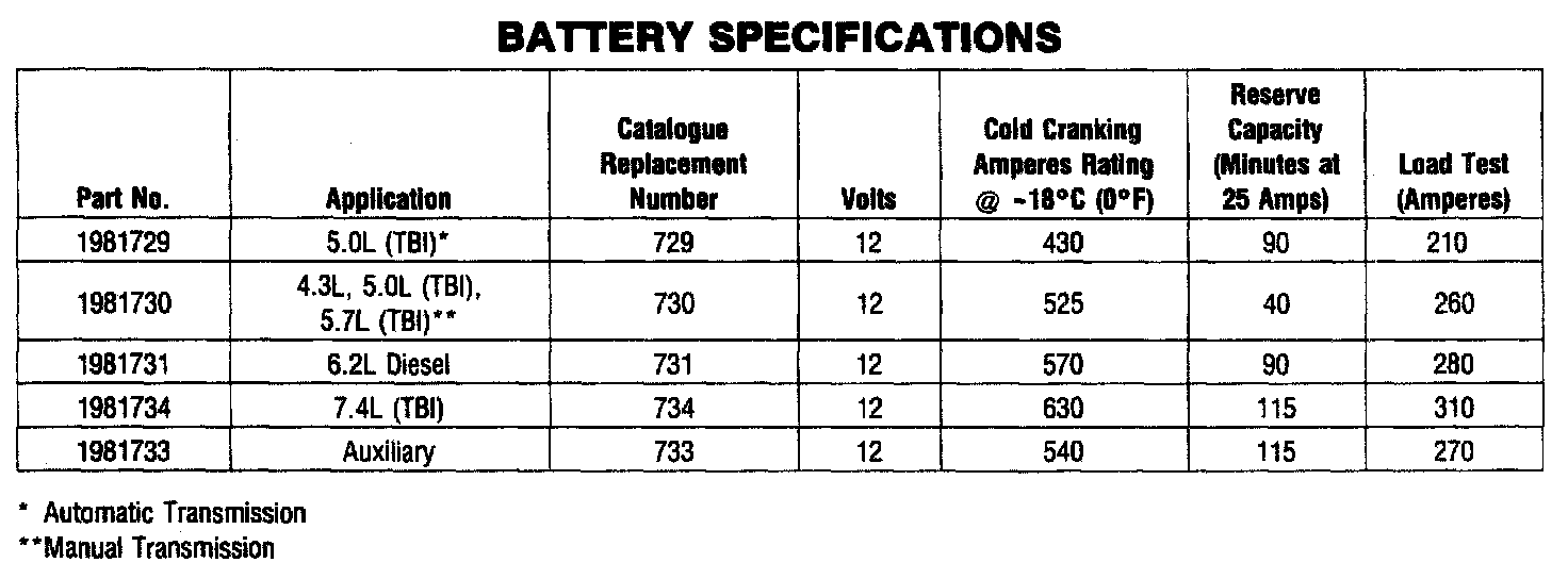 Starting and Charging: Specifications