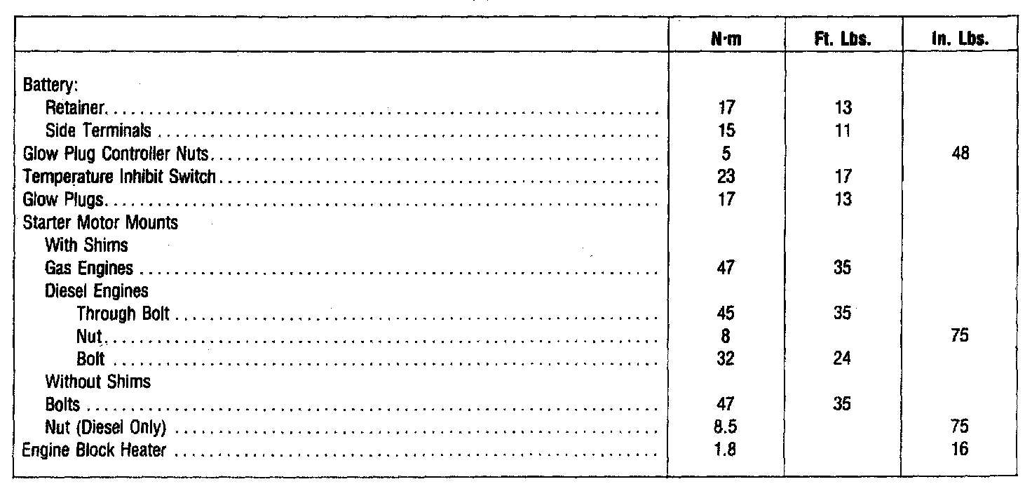 TORQUE SPECIFICATIONS