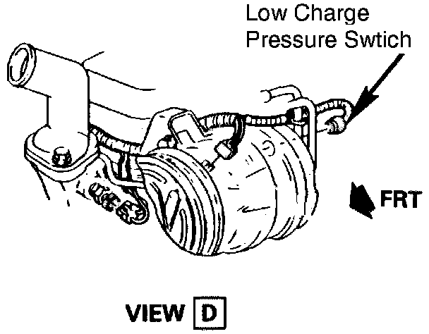 The A/C Low Charge Protection Switch is located at the rear of the compressor.