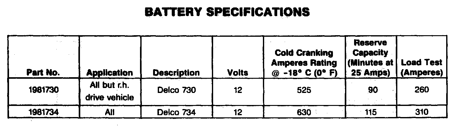 Starting and Charging: Specifications