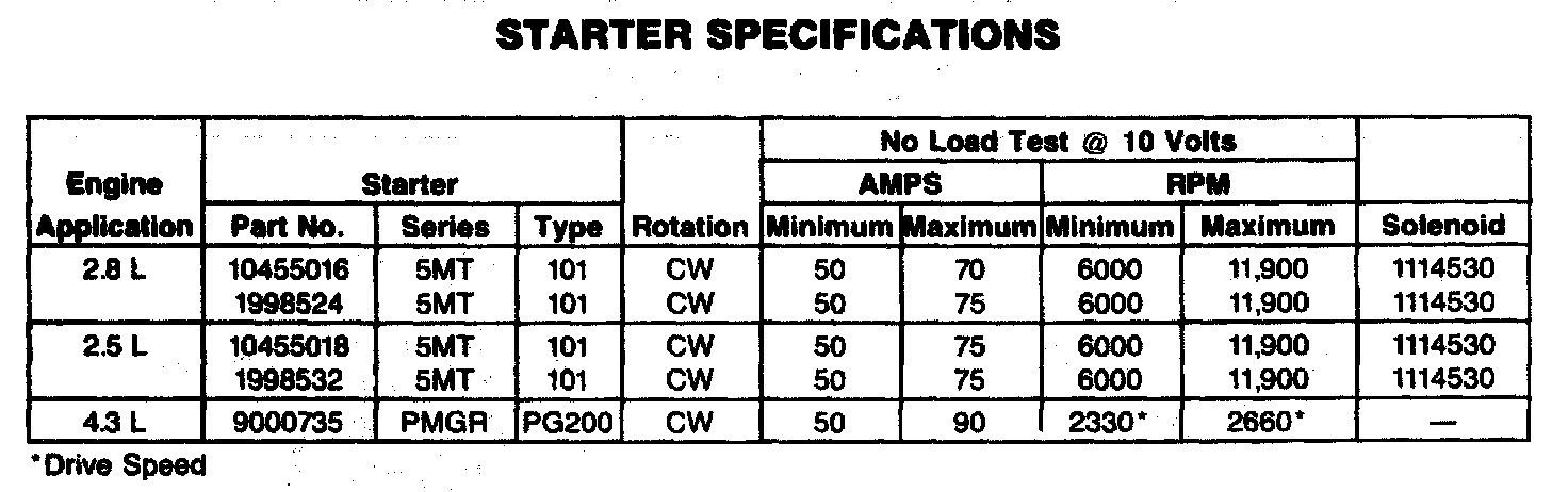 STARTER SPECIFICATIONS