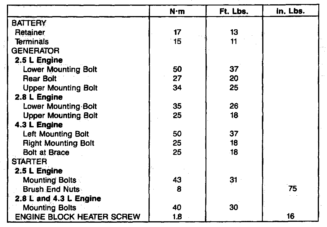 TORQUE SPECIFICATIONS