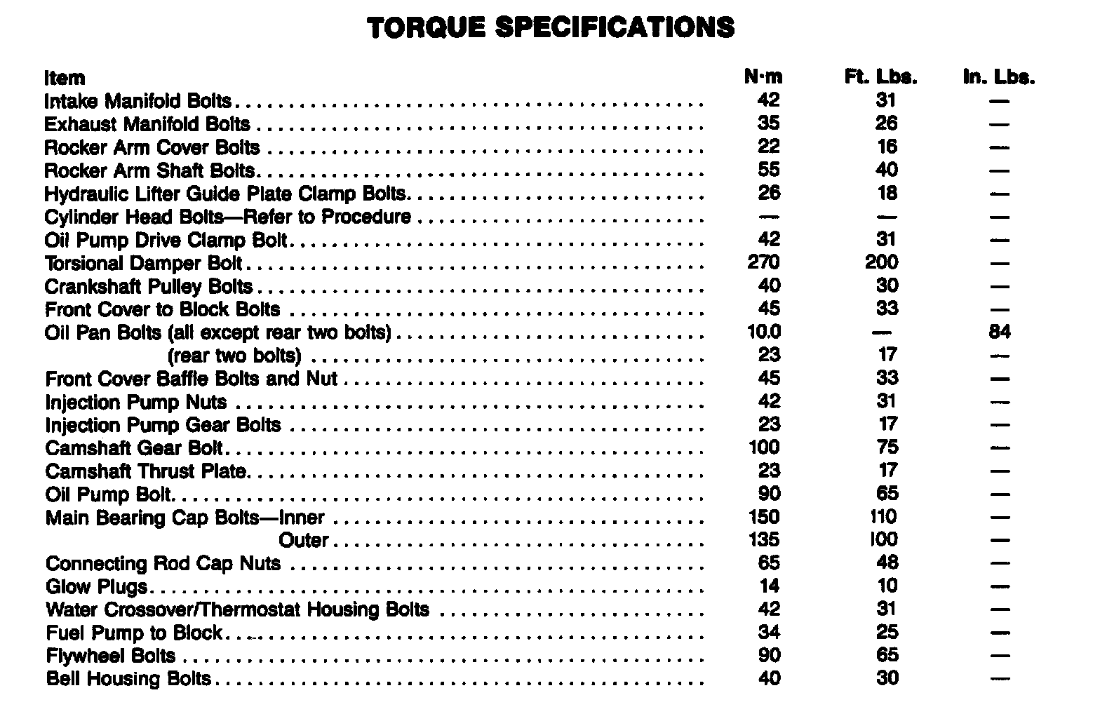 Torque Specifications: