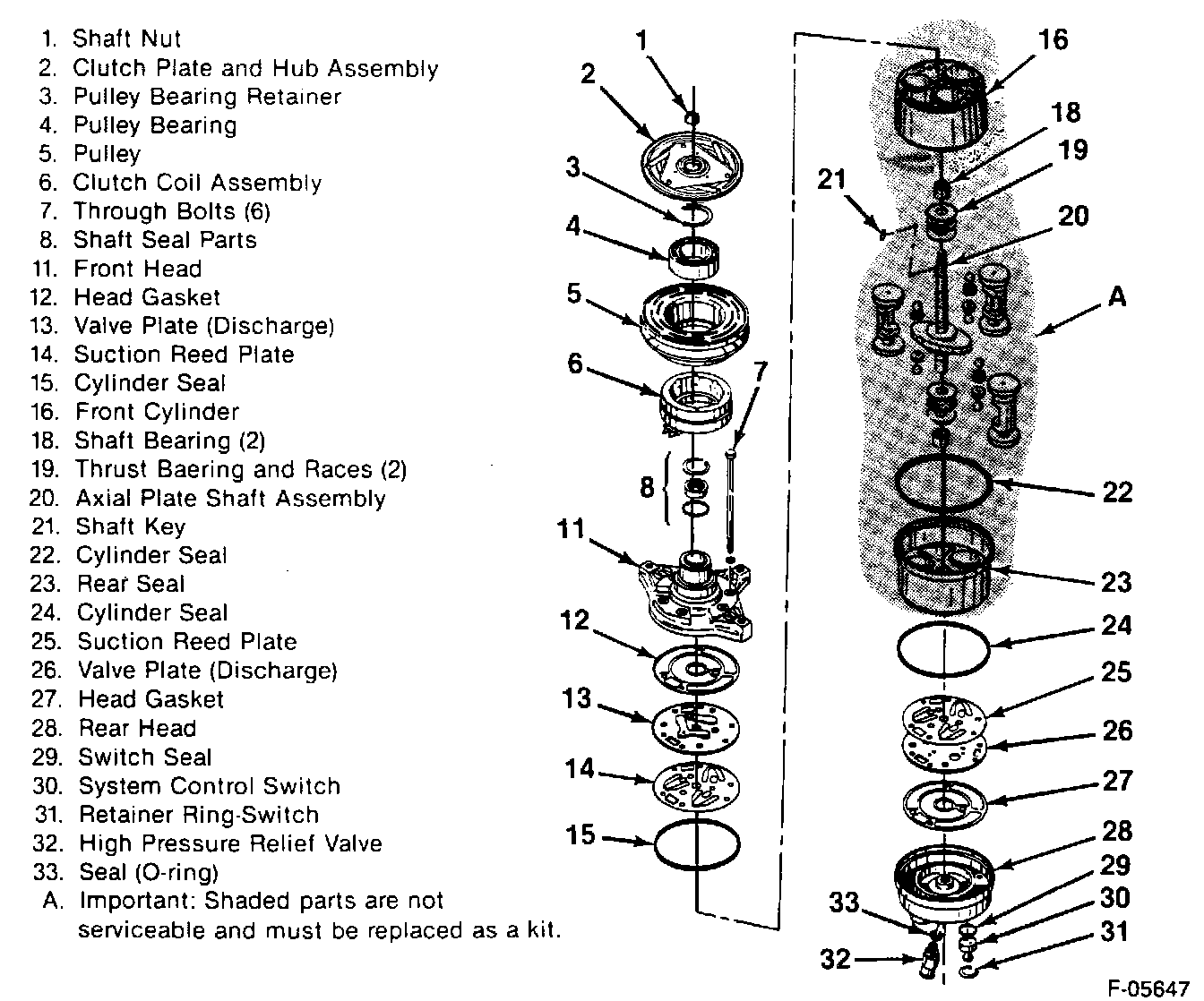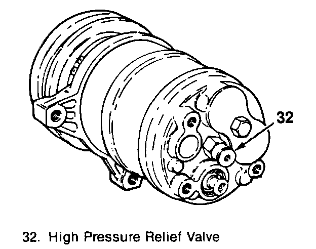 ^ Lubricate the threads of the pressure relief valve (32) and new seal with 525 viscosity refrigerant oil.