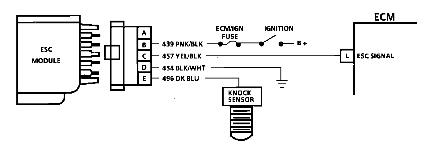 The Electronic Spark Control (ESC) system is designed to retard the spark timing up to 20~ to reduce spark knock (detonation) in the engine. This allows the engine to use maximum spark advance to improve driveability and fuel economy.