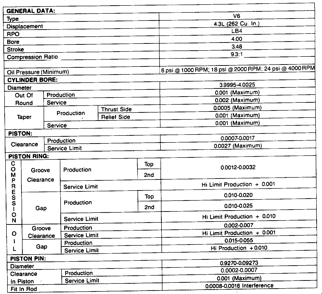 Engine Specifications: